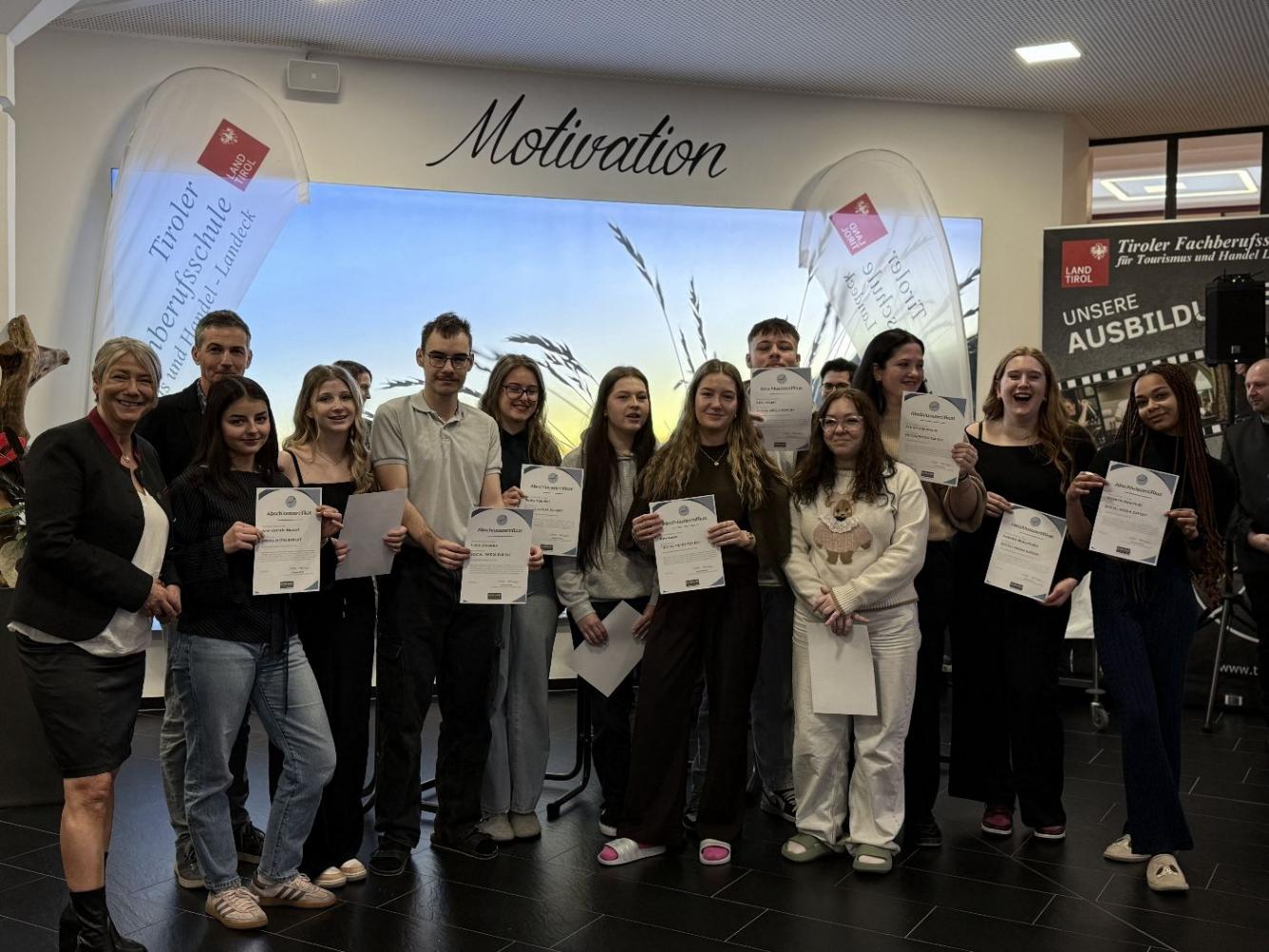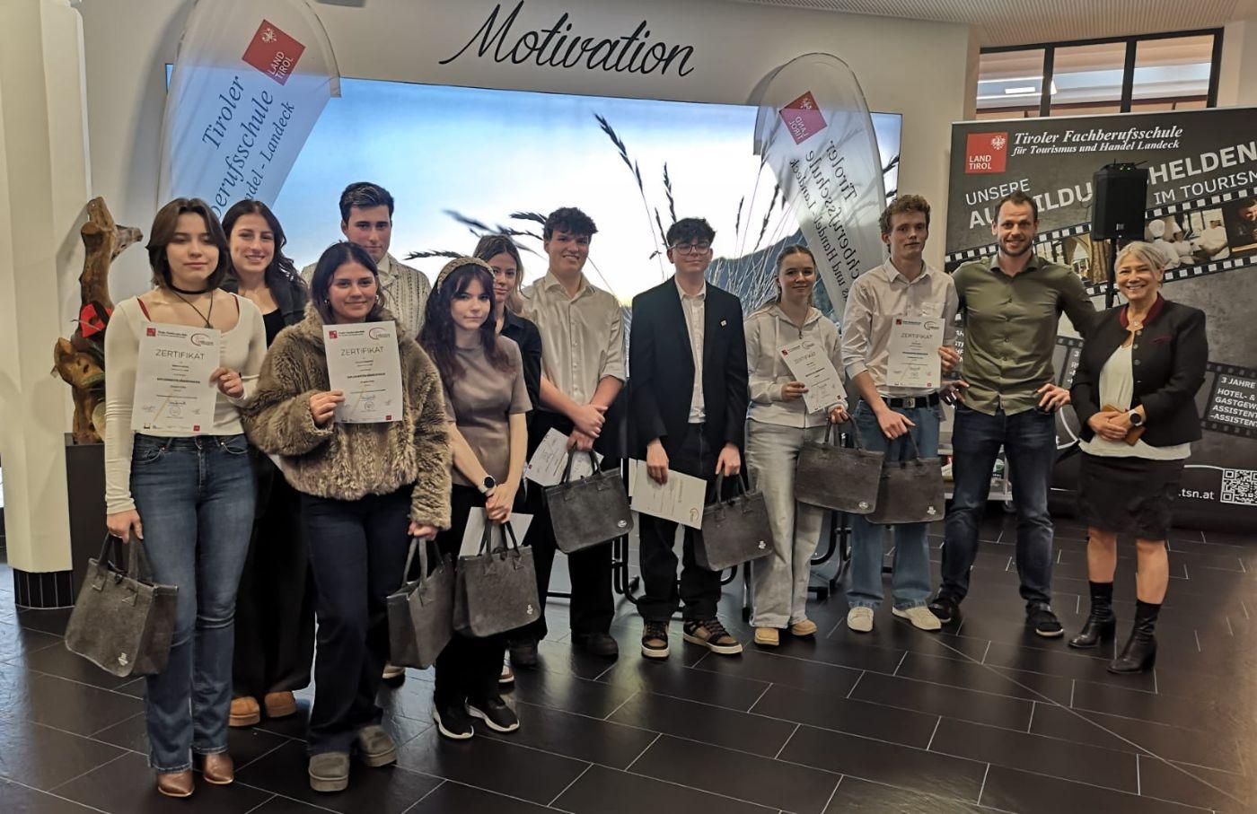 Unser 2. Lehrgang 2026 endete mit einem würdigen Abschluss und einer Menge Zertifizierungen: Käsekenner*in, Kaffeekenner*in, Tourismus-Online-Management, Social-Media-Expert. Wir gratulieren euch allen herzlich und wünschen besonders unserer Abschlussklasse, der 3bHGA, alles Gute für die Lehrabschlussprüfungen und den weiteren Lebensweg.