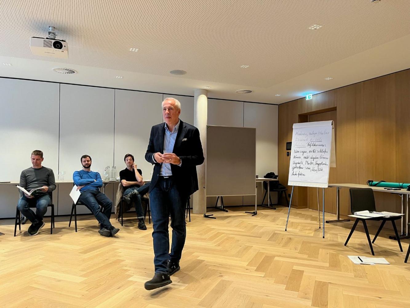 Am Abend sowie am nächsten Tag erfolgte ein Austausch zwischen Vertretern der Wirtschaftskammer und den Schulen sowie eine Vernetzung der Schulen untereinander.